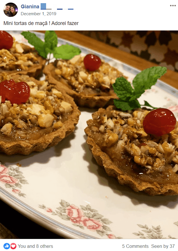 Esta receita clássica combina a acidez da maçã com um toque de especiarias e de castanhas. Uma porção proporciona 17% de fibras, 26% de magnésio e 21% de fósforo.